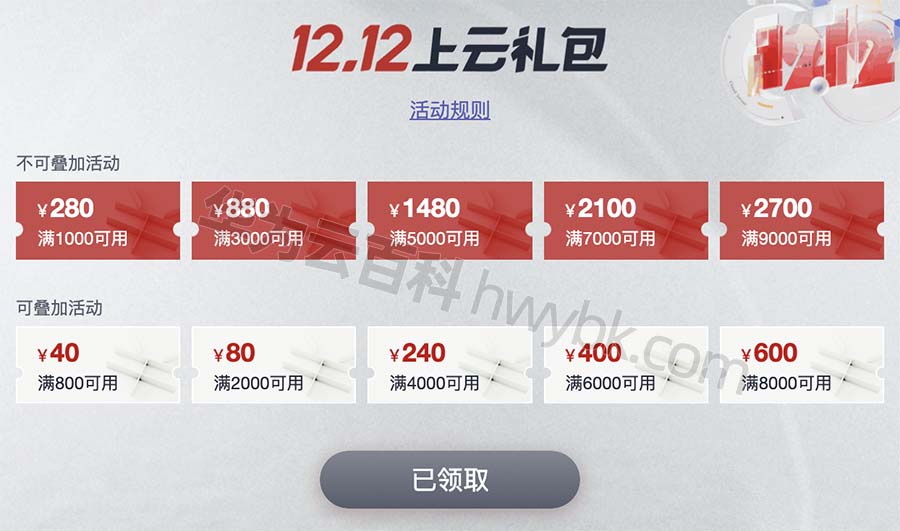 如上图,上云大礼包是8800元满减优惠券,更多活动请移步到华为云官方页面:
