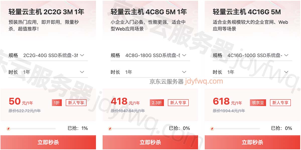 京东云618活动4核8G服务器418元一年,价格优惠性能如何?性能也可以,轻量云主机,限制500GB月流量,如果流量够用的话,可以入。配置为轻量云主机4C8G-180G SSD系统盘-5M带宽-500G月流量 华北-北京,活动页面 jdyfwq.com 链接打开如下图: