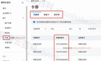 阿里云优惠券在哪查看?收到短信,阿里云给我的账号发送优惠券,查找了半天终于找到了,阿里云优惠券查询链接:aliyunbaike.com/go/coupon 在阿里云的【 ...